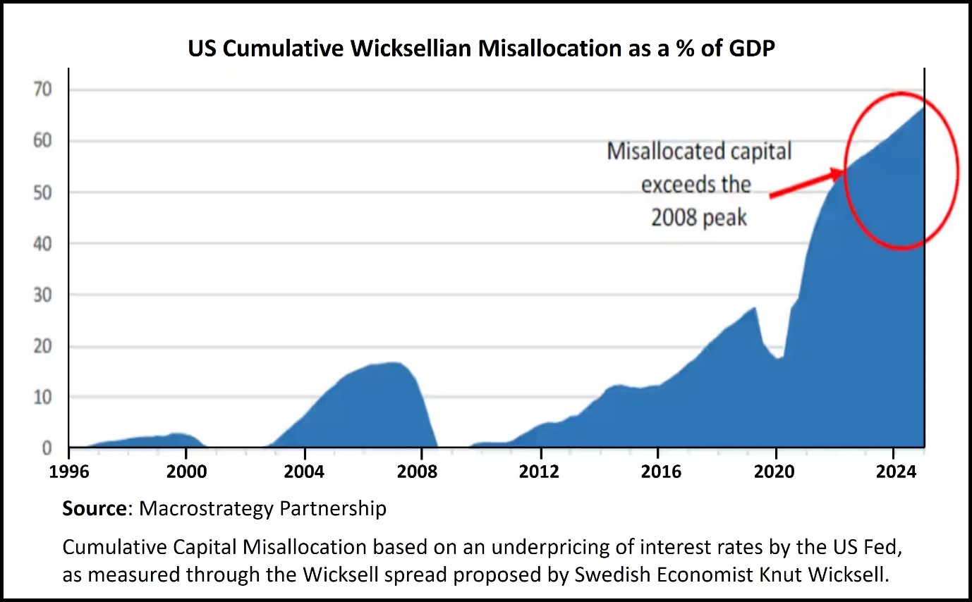 The indicator that captures the total misallocation – AI, cryptos, NFTs, housing etc indicates a level of capital misallocation that far surpasses the 2008 GFC. In fact, the misallocation during the dotcom days appears like a rounding error compared to the total misallocation today. Investments in LLMs and Data Centres are soon going to look for a “Return Of Capital” let alone Return On Capital.