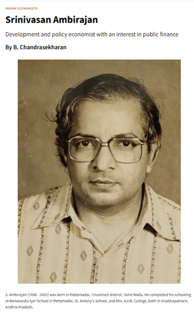 Distinguished Indian Economists-Initiative of Azim Premji University Distinguished Indian Economists-Initiative of Azim Premji University Mr B Chandrasekaran, Founder Chairman, AgaPuram Policy Research Centre (APRC) has contributed to the Initiative of Azim Premji University on Prof S Ambirajan’s life and works. This project explores the contributions of modern Indian economists, whose ideas and analyses have not only shaped India’s economic trajectory but also generated a deeper understanding of development and growth in the country. Chandrasekaran Balakrishnan April 17, 2025 Indian Economy, Indian Liberals Full Article is at: https://azimpremjiuniversity.edu.in/indian-economists/s-ambirajan                               https://azimpremjiuniversity.edu.in/distinguished-indian-economists