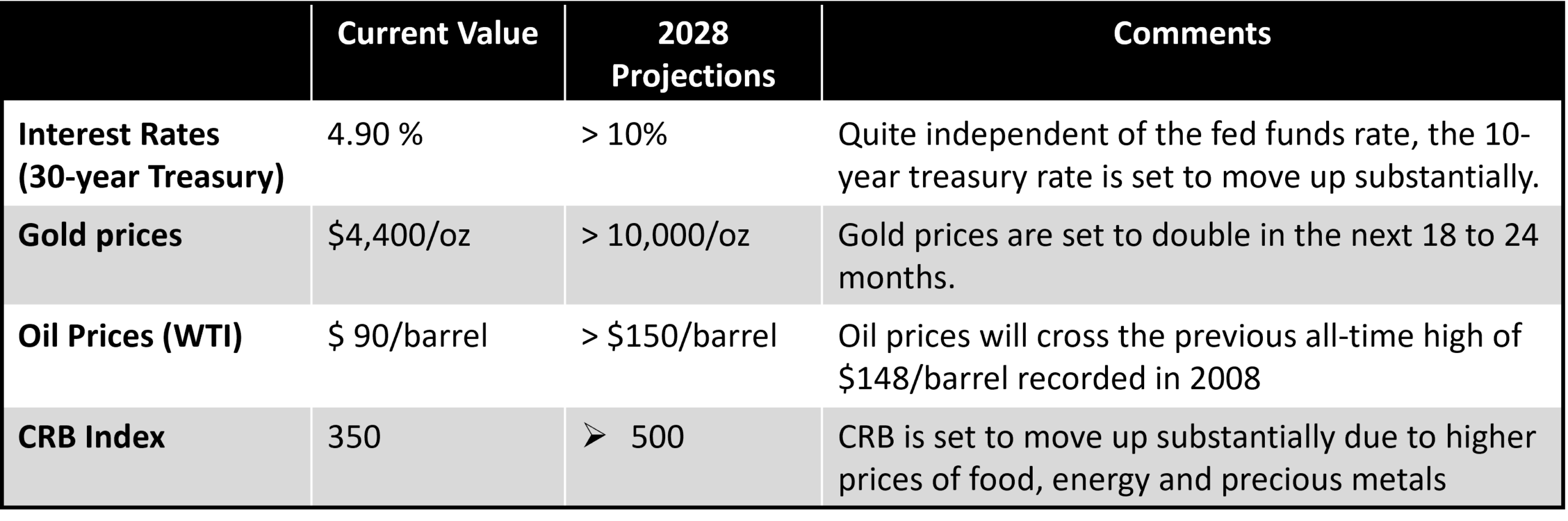 Given below is a summary of what’s likely to happen to interest rates, gold, and oil prices over the next 2 to 3 years. This assumes a continuation of the current trend of annual deficits of $2 to $2.5 trillion and no major new wars. Of course, the bubbles have started to burst, and all indications are that the credit bubble and Housing Bubble 2.0 will begin unwinding this year. This is likely to be followed by the bursting of the AI bubble and finally a long unwinding of the US bond bubble.